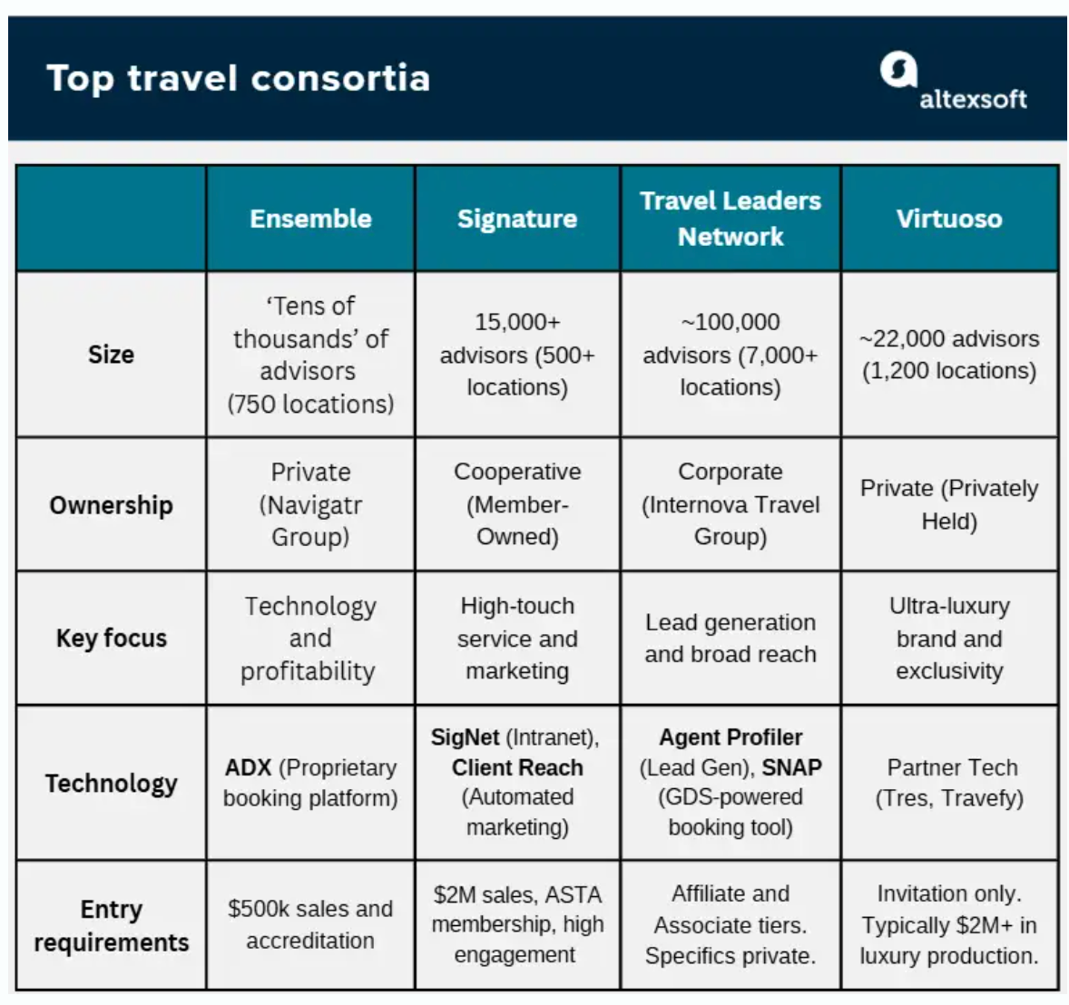 The article explains what travel consortia are and compares major networks such as Virtuoso, Signature, Ensemble, and Travel Leaders. It covers how consortia give agencies better rates, amenities, and marketing support through preferred supplier deals, shared technology, and training. It outlines typical requirements to join, costs and commissions, differences in focus like luxury versus broad market, and how agencies should choose based on their client base, supplier mix, and tech needs.