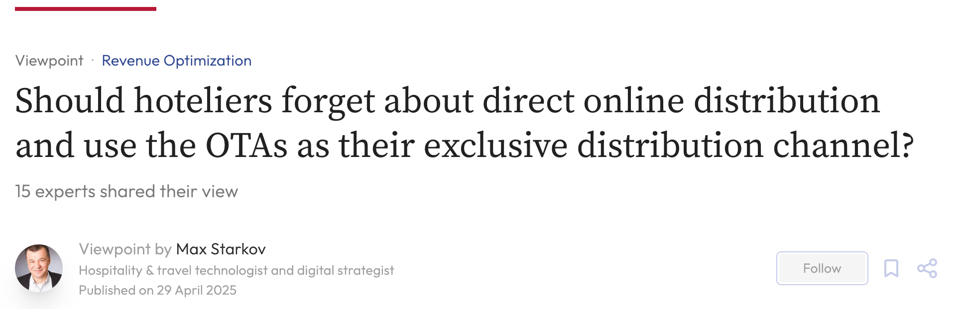 A recent heated discussion on LinkedIn was a clash between two schools of thought regarding direct online distribution in hospitality.