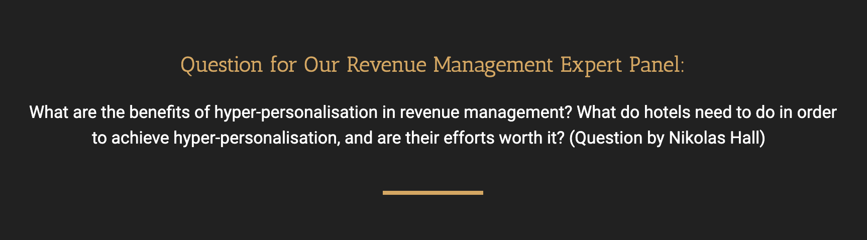 Our Industry Expert Panel exists out of professionals within the hospitality & travel Industry. They have comprehensive and detailed knowledge, experience in practice or management and are forward-thinking. They are answering questions about the state of the industry. They share their insights on topics like revenue management, marketing, operations, technology and discuss the latest trends.